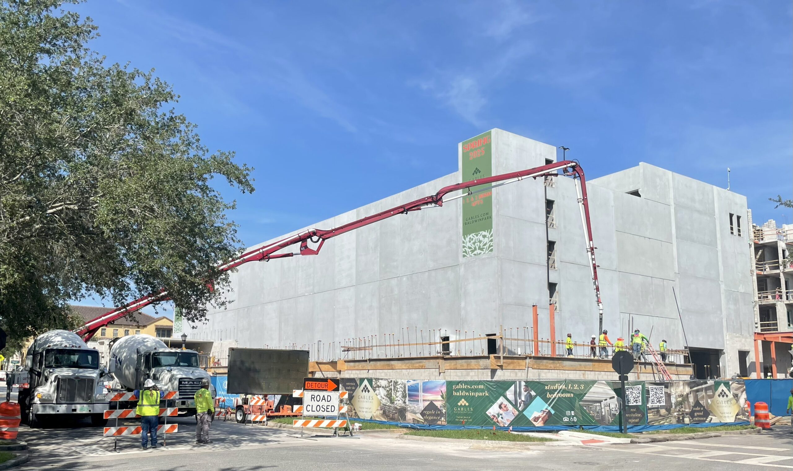 Gable Baldwin Park is a new 223 unit apartment building located in the heart of Baldwin Park. A combination of 3000 #57, 4000 #8 with HRWR, and 3000 MG-C were used for this project. Concrete on this project was used for the foundations, CIP walls for the parking garage, slab on grade, topping mix on hollow core floors, and cell fill for just over 100,000 CMU block.